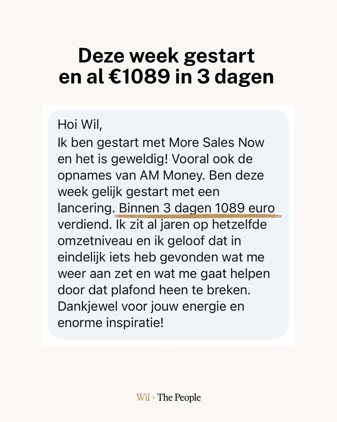 Zodra je iets hebt geïmplementeerd en een resultaat hebt behaald of een inzicht hebt gekregen stuur je een DM naar met een review naar @wilandthepeople en dan verlengen we je toegang naar onbeperkt, anders is het 30 dagen en mag je alleen AM Money houden twv 3333